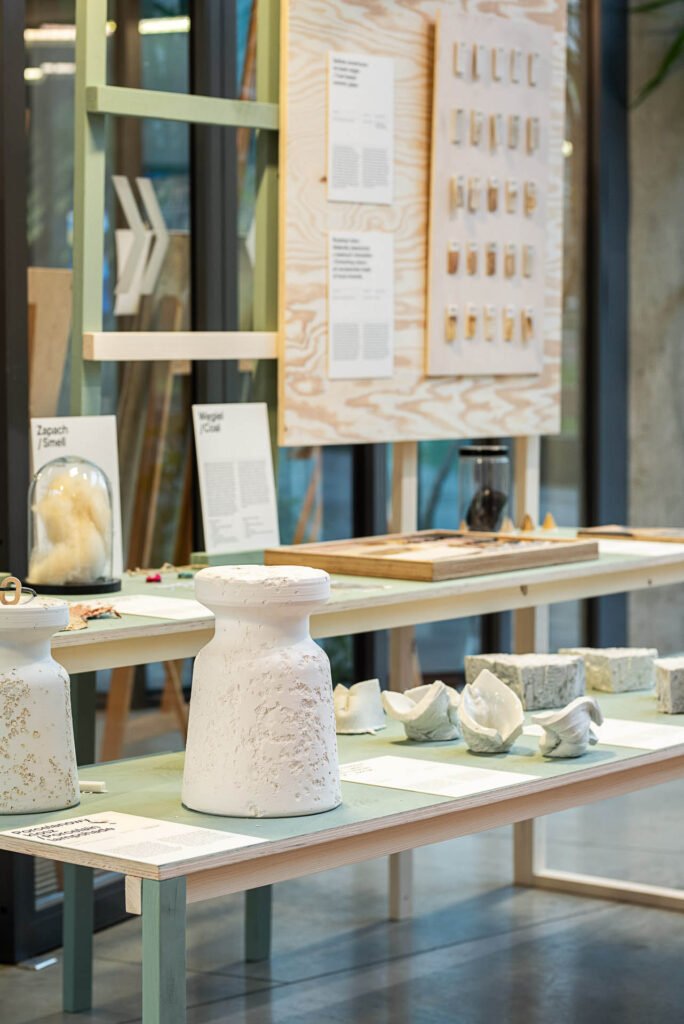 The Material LAB exhibition is a review of student projects created as part of the Design programme at the Academy of Fine Arts in Katowice in the Product Design Studio and in the courses: Materials and Contexts, Material Experiments, Sculpture and Modeling.